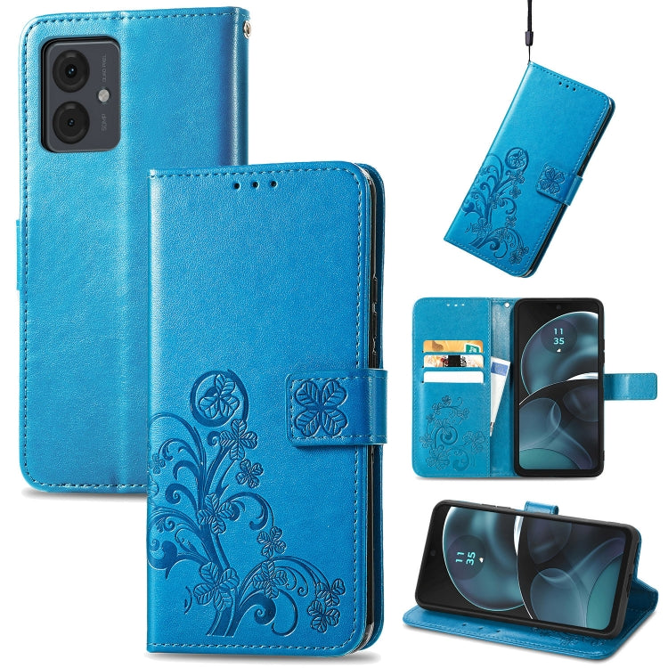 Funda de Cuero Repujado para Motorola Moto G14 con Cierre de Cuatro Hojas (Azul)