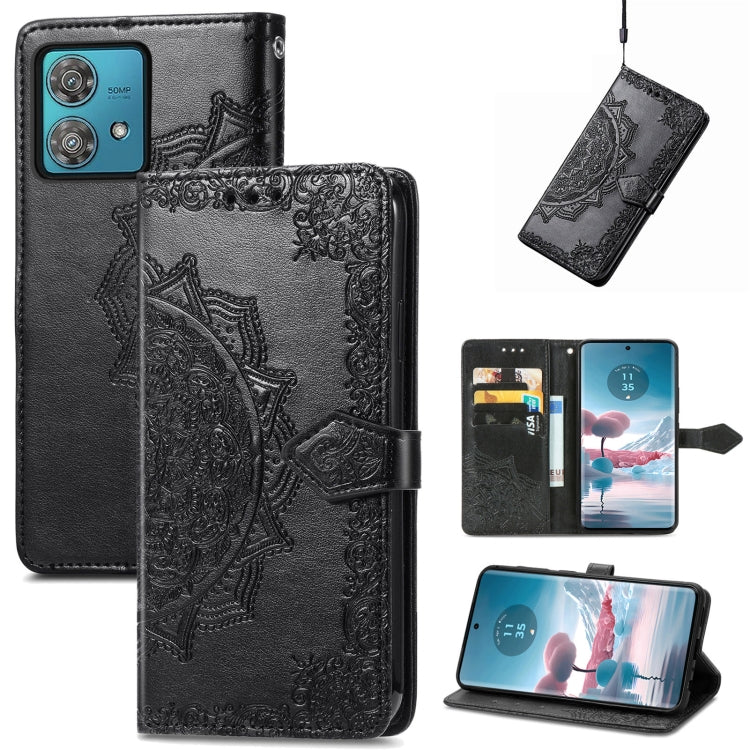 Funda de Cuero para Motorola Edge 40 Neo Mandala Flower en Relieve (Negro)