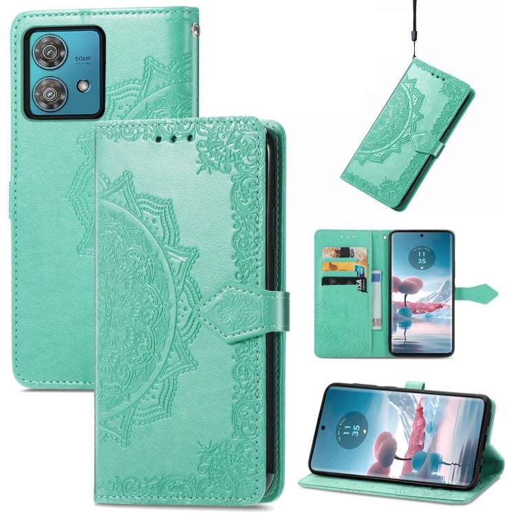 Funda de Cuero para Motorola Edge 40 Neo Mandala Flower en Relieve (Verde)