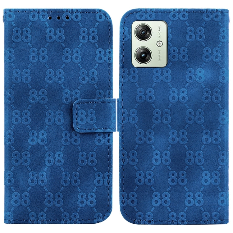 Funda para Motorola Moto G54 de Cuero con Relieve en Forma de 8 Dobles (Azul)