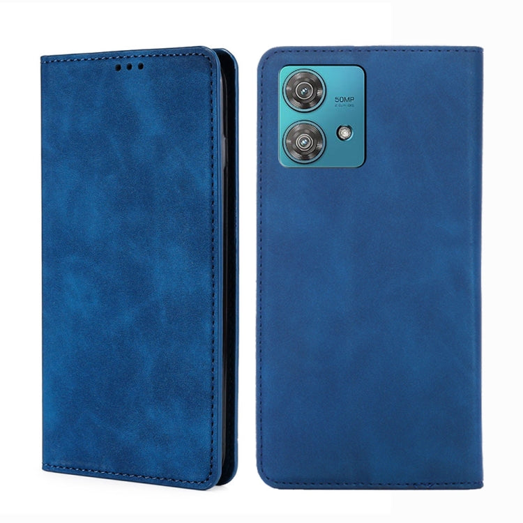 Funda de Cuero Magnética Skin Feel para Motorola Edge 40 Neo 5G (Azul)