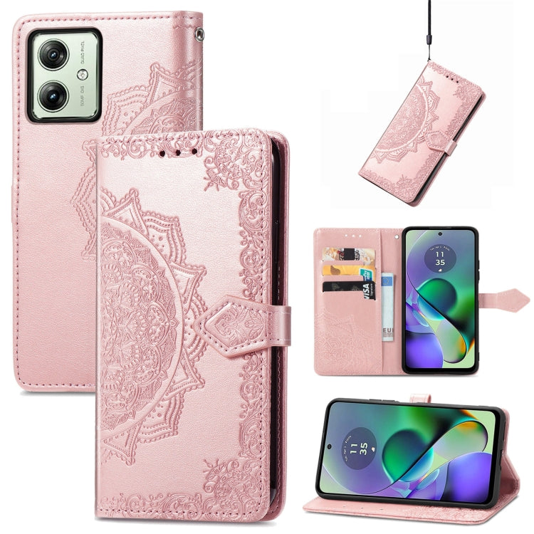 Funda para Motorola G54 5G de Cuero con Relieve de Flor de Mandala (Oro Rosa)