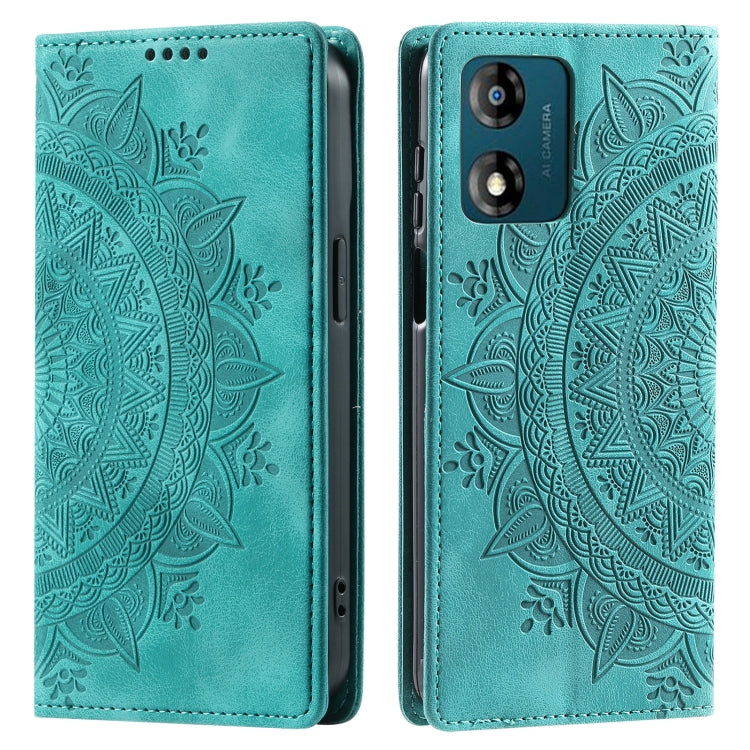 Funda de Cuero Magnética en Relieve para Motorola Moto E13 Totem (Verde)