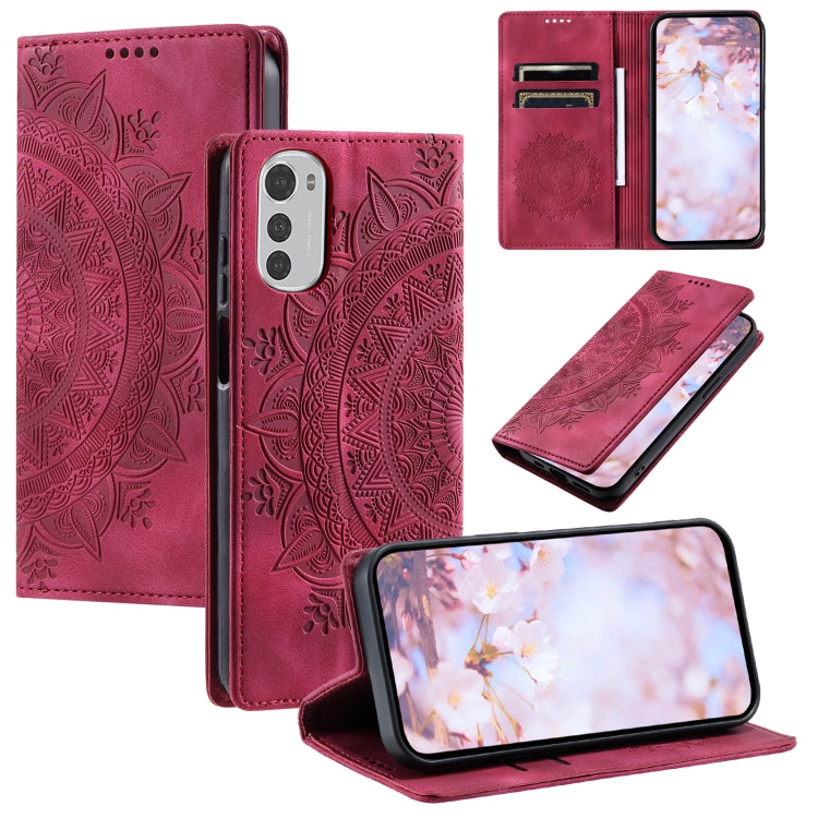 Funda de Cuero Magnética Totem para Motorola Moto E32 en Relieve (Rojo)