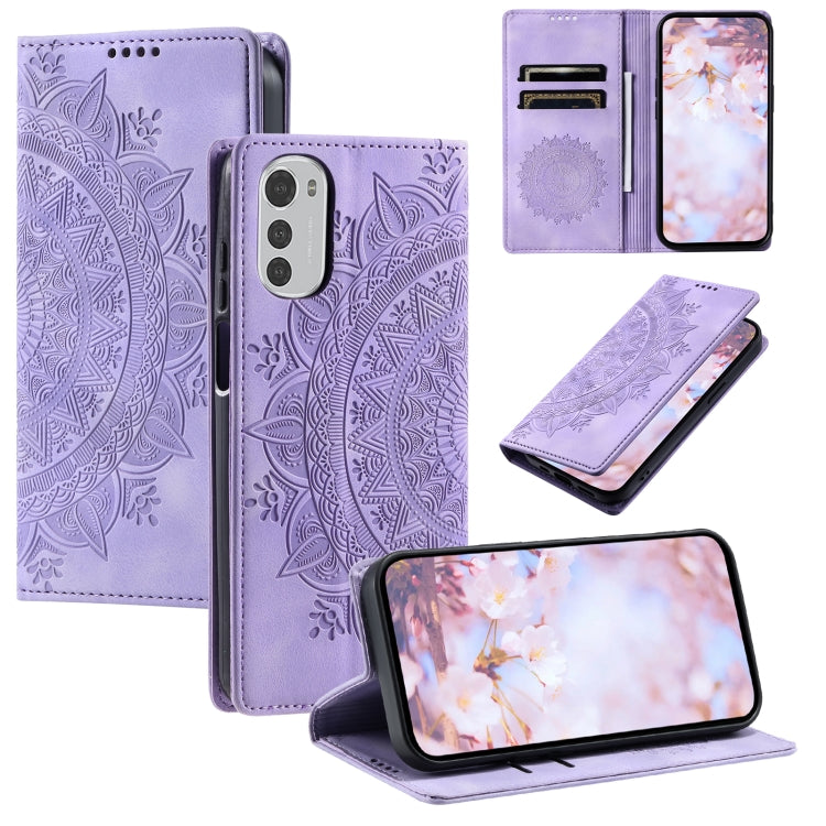 Funda de Cuero Magnética en Relieve para Motorola Moto E32 Totem (Púrpura)
