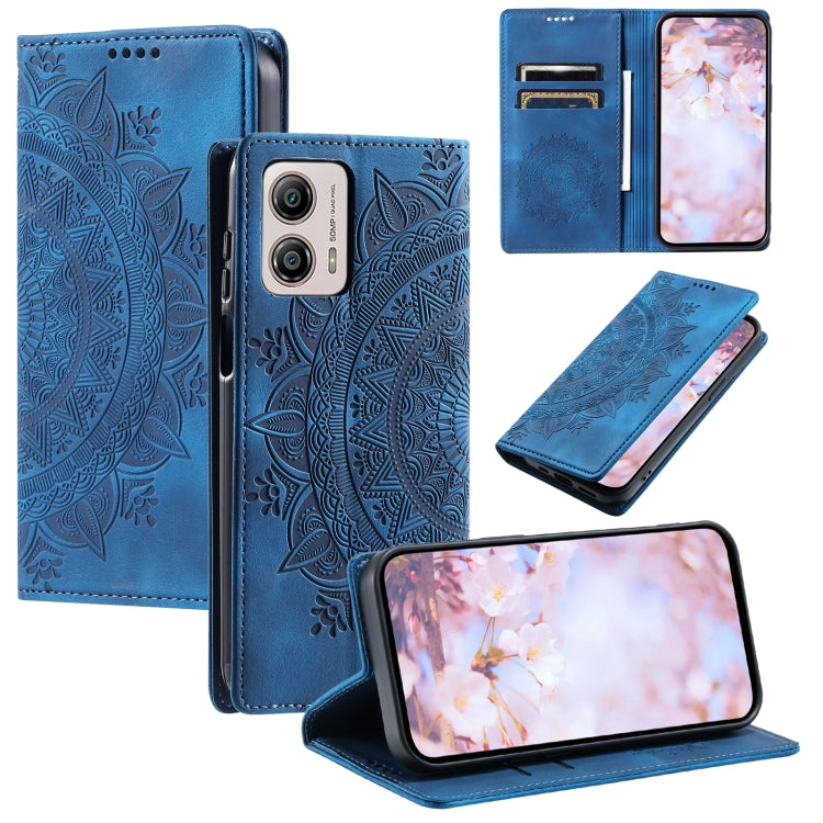 Funda de Cuero Magnética Totem para Motorola Moto G53 en Relieve (Azul)