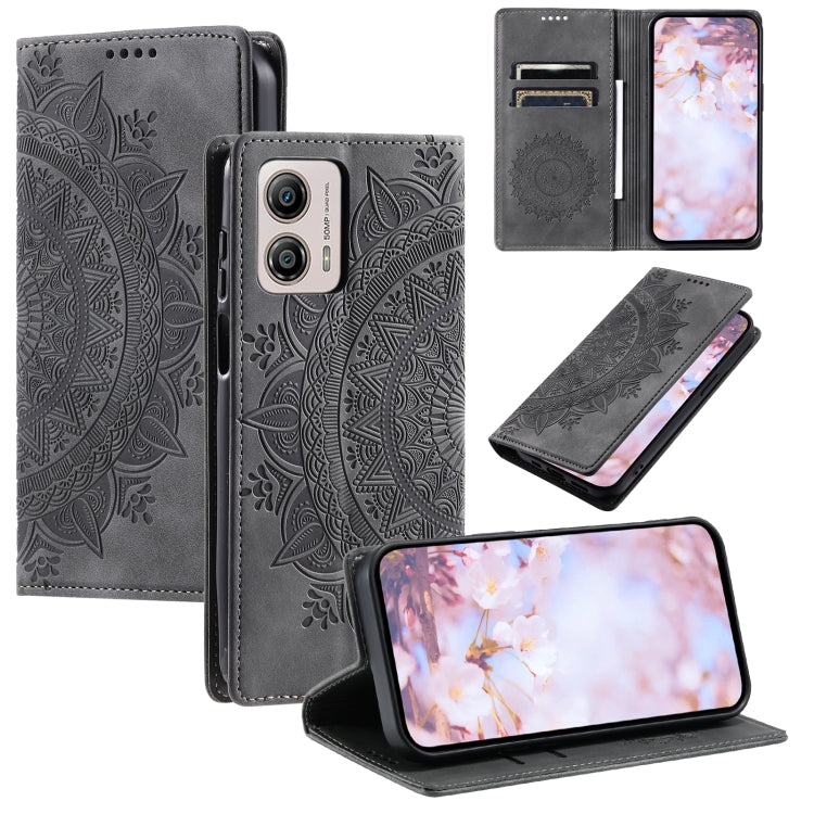 Funda de Cuero Magnética Totem para Motorola Moto G54 en Relieve (Gris)