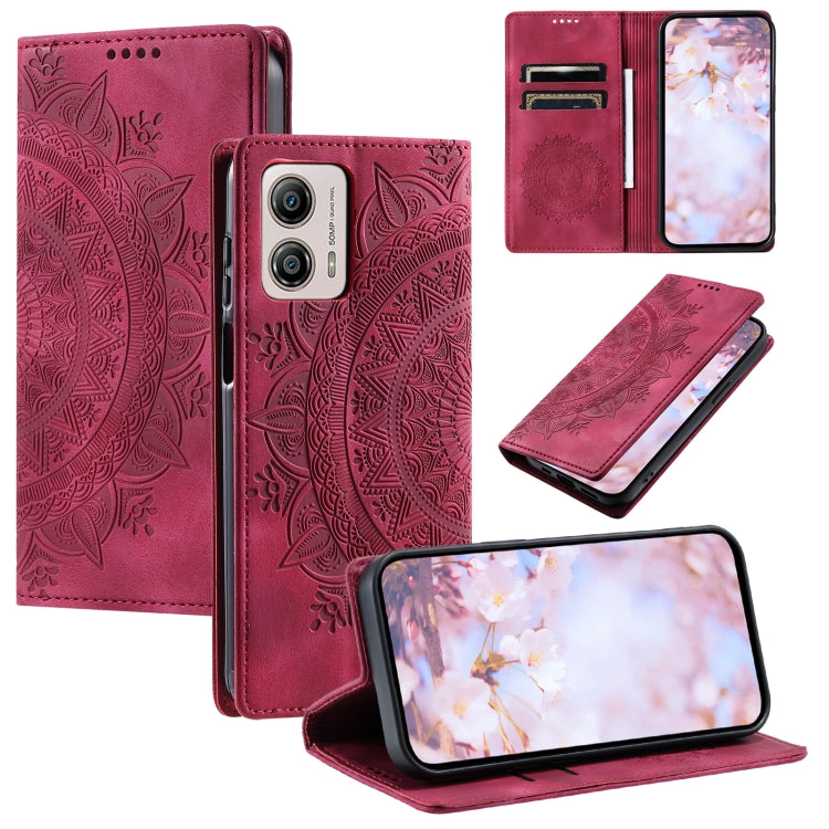 Funda de Cuero Magnética Totem para Motorola Moto G54 con Relieve (Rojo)