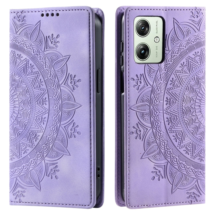 Funda de Cuero Magnética en Relieve para Motorola Moto G54 Totem (Púrpura)