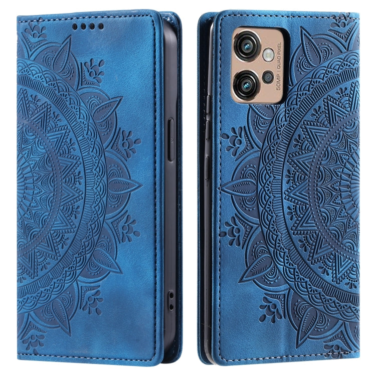 Funda de Cuero Magnética Totem para Motorola Moto G32 con Relieve (Azul)