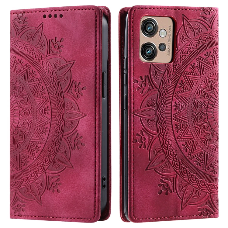 Funda de Cuero Magnética Totem para Motorola Moto G32 en Relieve (Rojo)