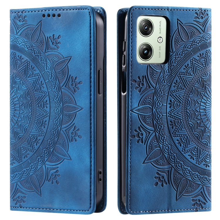 Funda de Cuero Magnética para Motorola Moto G14 Totem en Relieve (Azul)