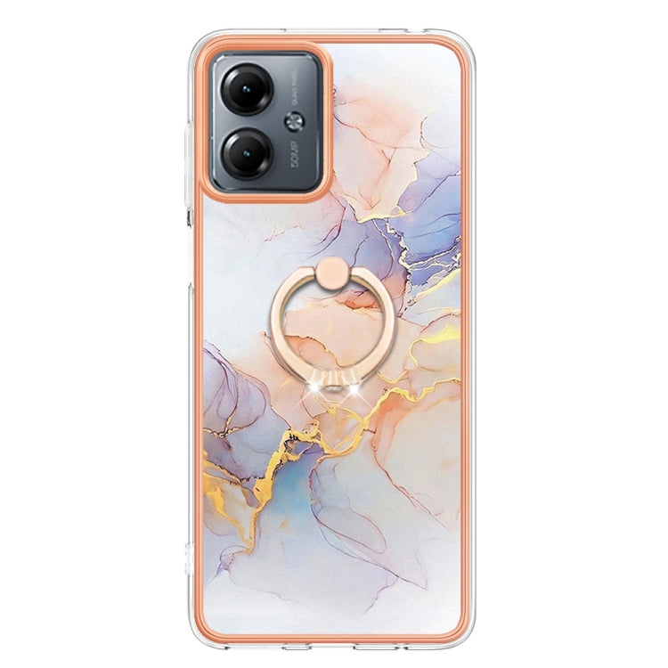 Funda para Motorola Moto G14 Imd TPU con Galvanoplastia y Anillo (Mármol Blanco)