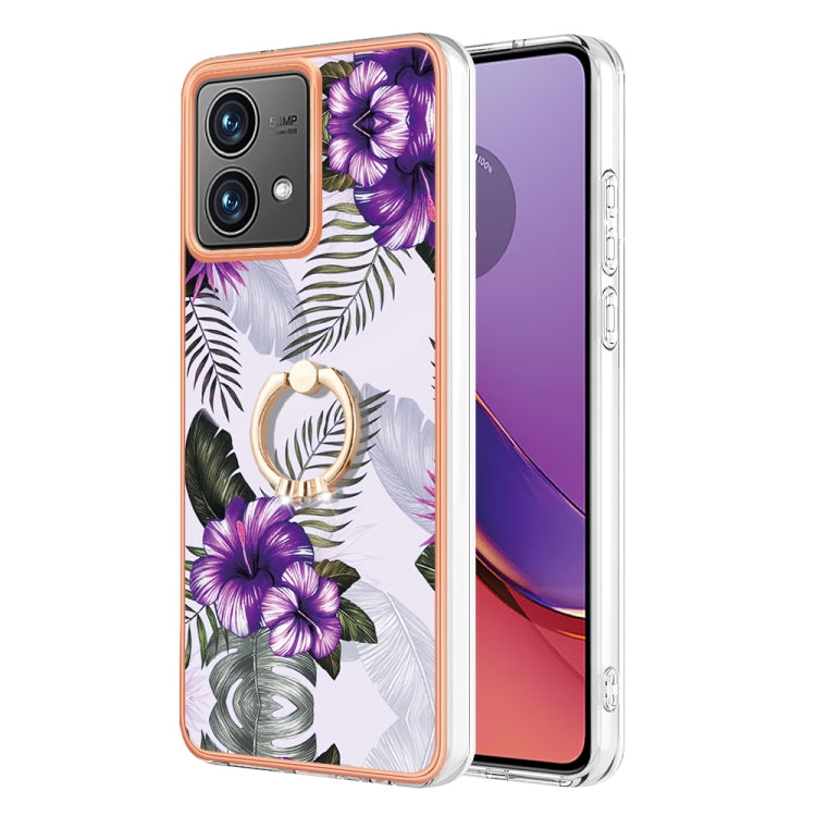 Funda para Motorola Moto G84 TPU con Galvanoplastia y Anillo (Flor Púrpura)