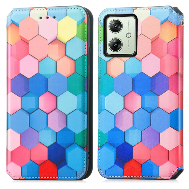 Funda de Cuero Magnética Caseneo para Motorola Moto G54 5G (Cubo Colorido)