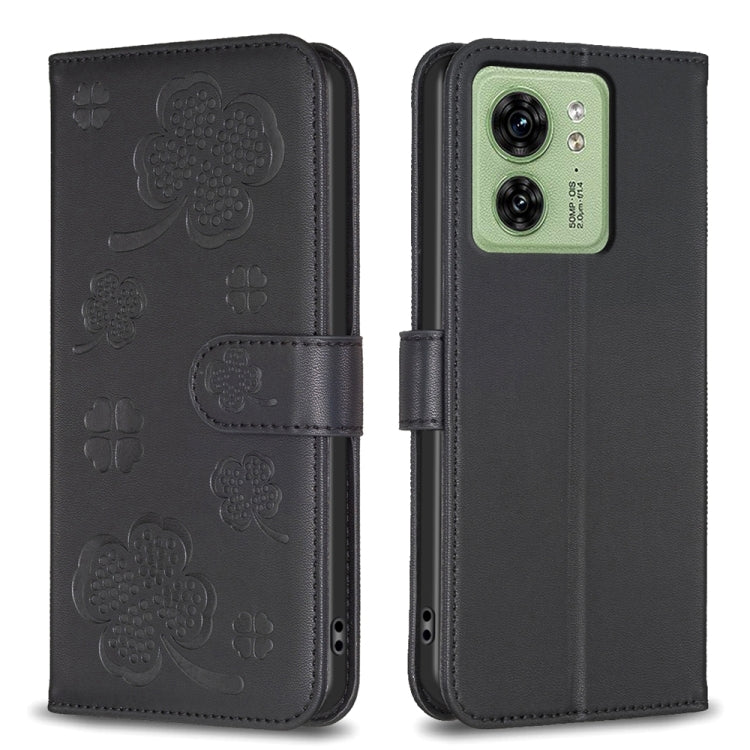Funda para Motorola Edge 40 5G de Cuero con Relieve de Cuatro Hojas (Negro)