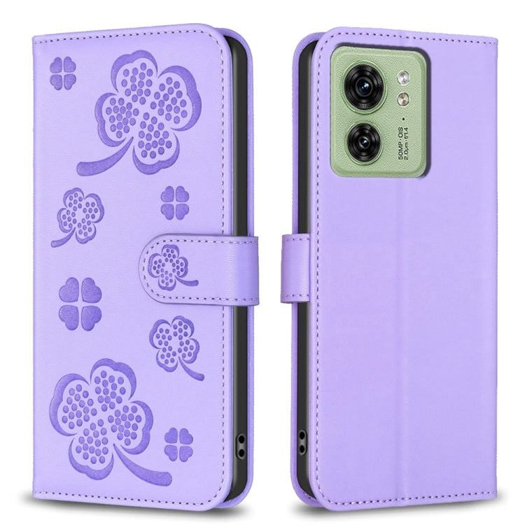 Funda para Motorola Edge 40 5G de Cuero con Relieve de Cuatro Hojas (Púrpura)