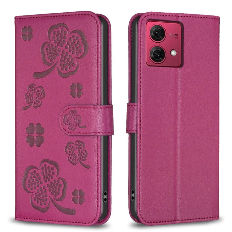 Funda de Cuero para Motorola Moto G84 con Relieve de Cuatro Hojas (Rojo Rosa)