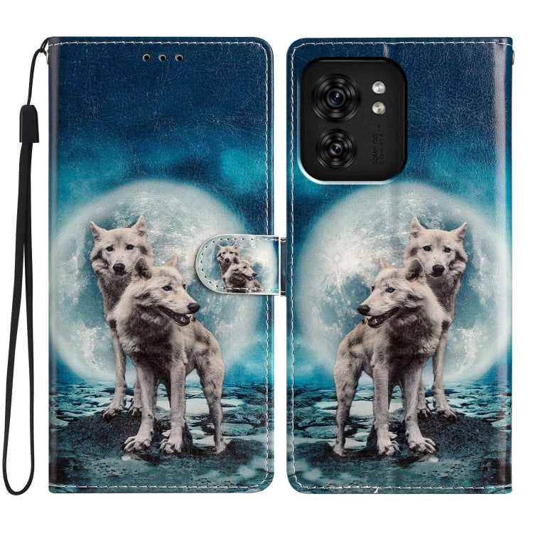 Funda de Cuero para Motorola Edge 40 con Dibujo Coloreado (Lobos Gemelos)