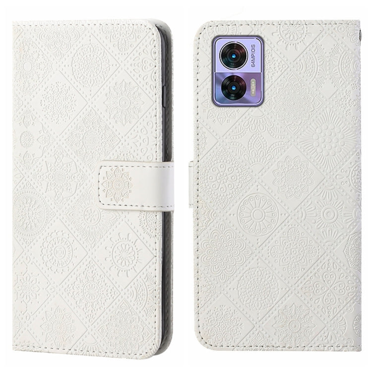 Funda para Motorola Edge 30 Neo de Cuero con Patrón en Relieve Étnico (Blanco)
