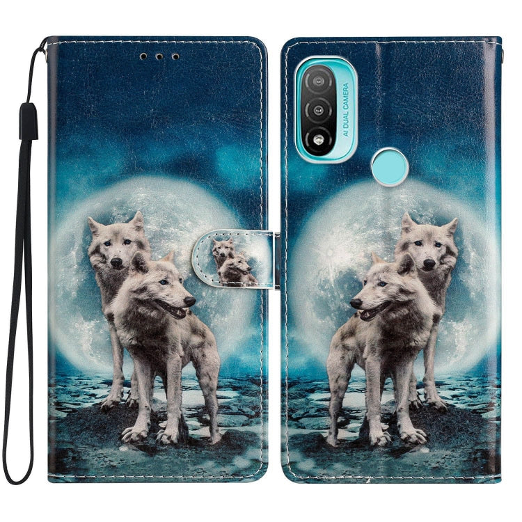 Estuche para Motorola Moto E20/E30/E40 de Cuero con Dibujo a Color (Twin Wolves)