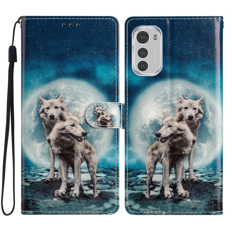 Estuche para Motorola Moto E32 de Cuero con Dibujo Coloreado Twin Wolves