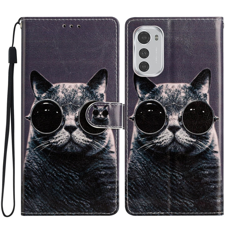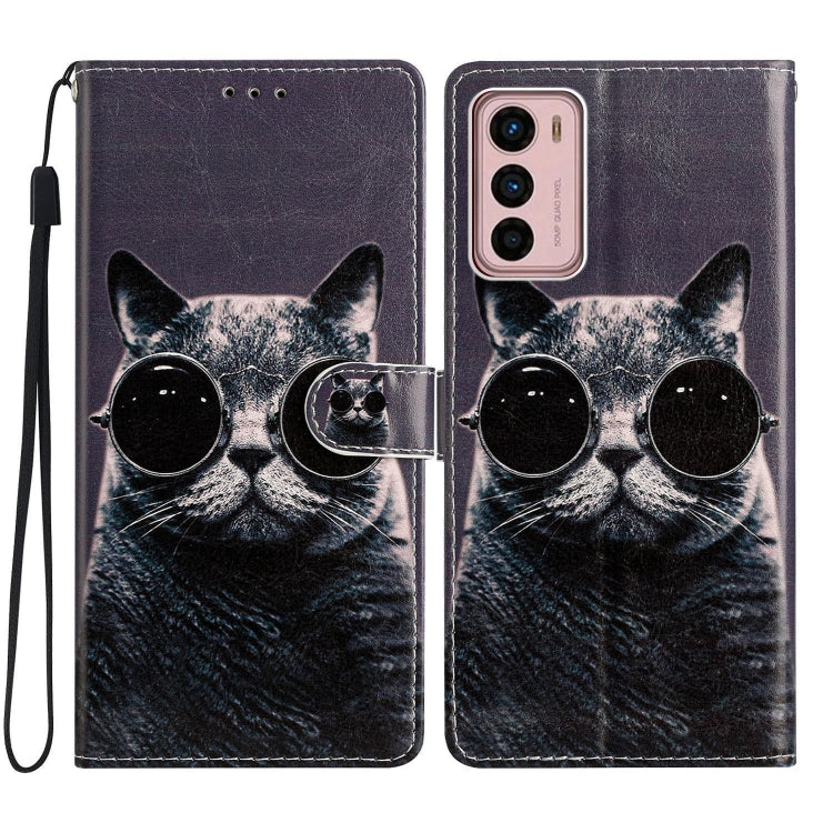 Estuche de Cuero para Motorola Moto G22 con Dibujo Coloreado Gafas de Sol Cat