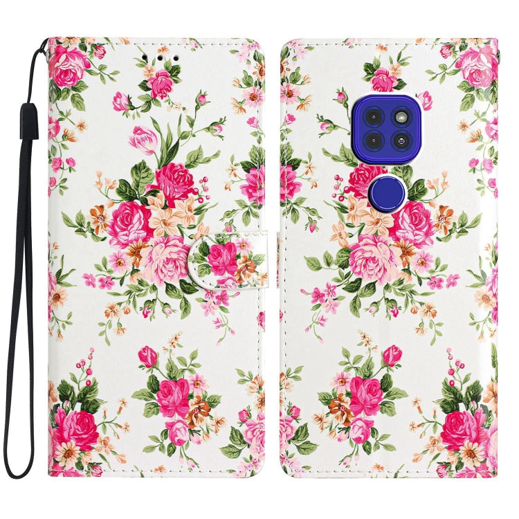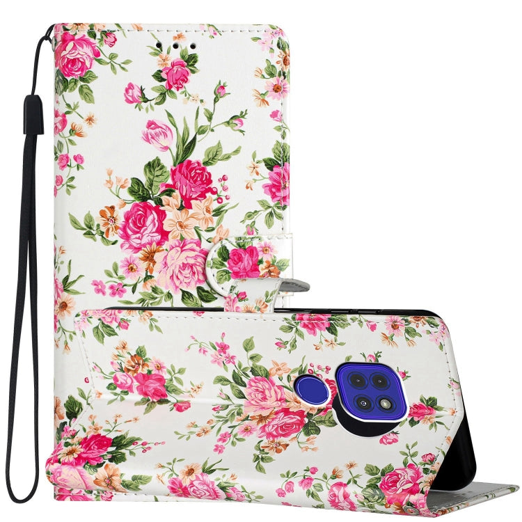 Estuche de Cuero para Motorola Moto G9 y G9 Play con Dibujo Coloreado Peonías