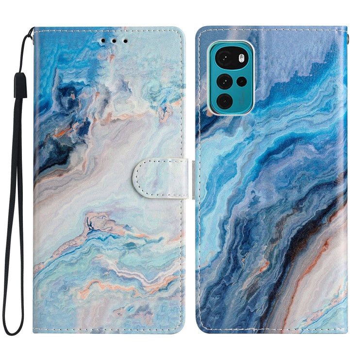 Estuche para Motorola Moto G22 de Cuero con Dibujo Coloreado (Mármol Azul)