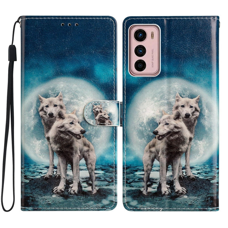 Estuche de Cuero para Motorola Moto G42 con Dibujo Coloreado Lobos Gemelos