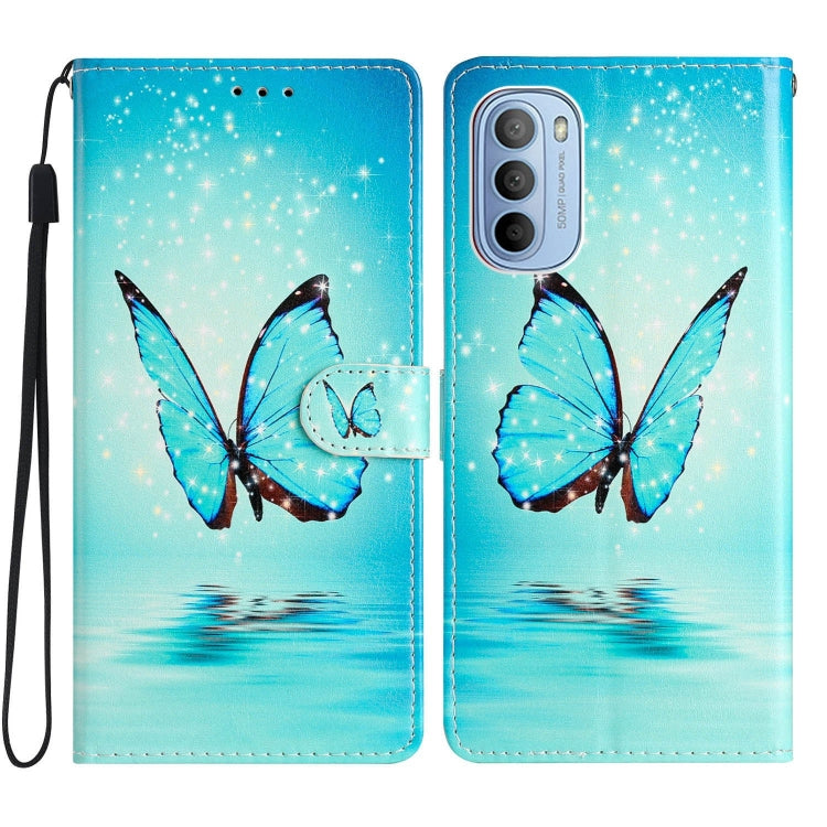Estuche para Motorola Moto G52 de Cuero con Dibujo Coloreado Mariposa Azul
