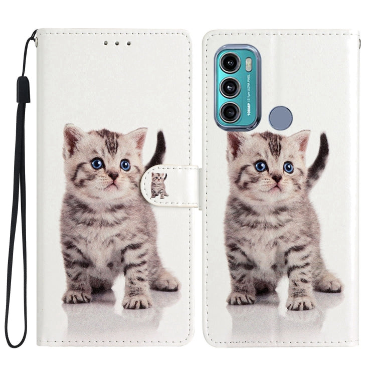 Estuche de Cuero para Motorola Moto G60 con Dibujo Pequeño Gato Atigrado