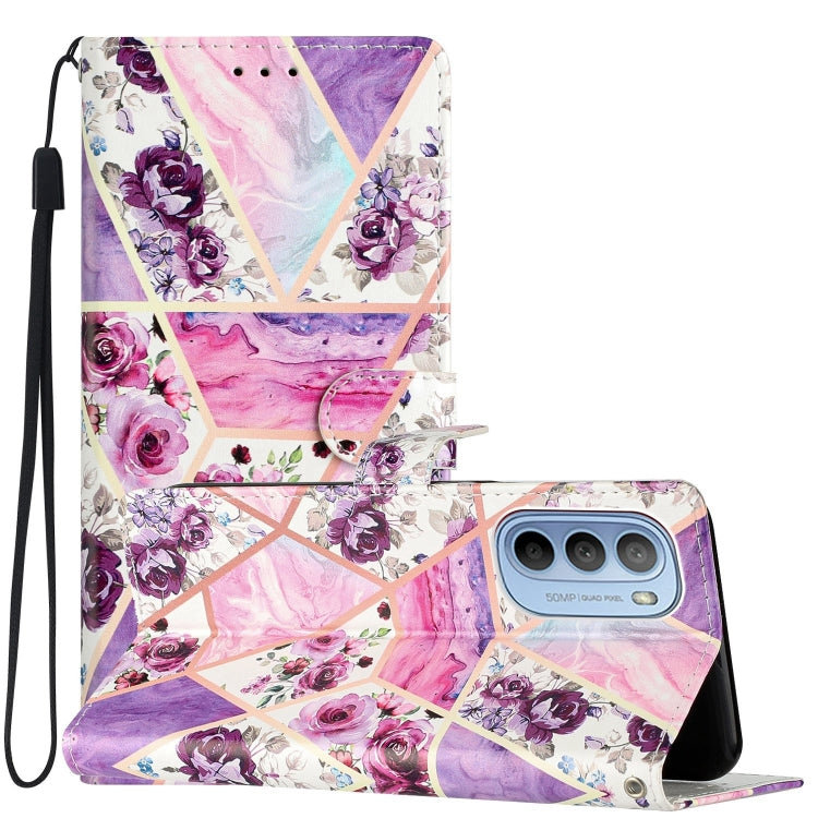 Estuche para Motorola Moto G62 de Cuero con Dibujo Coloreado Mármol Púrpura