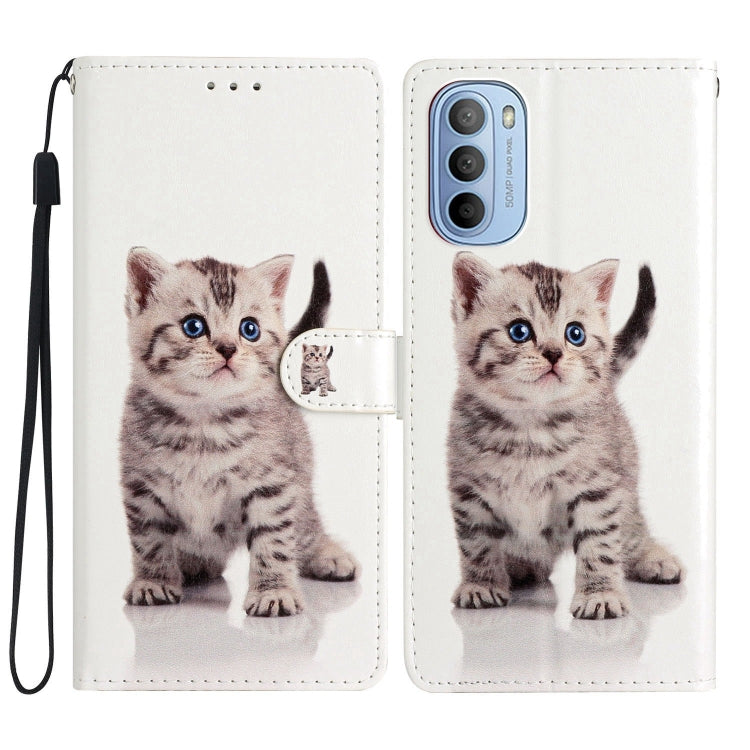 Estuche de Cuero para Motorola Moto G62 con Dibujo Pequeño Gato Atigrado
