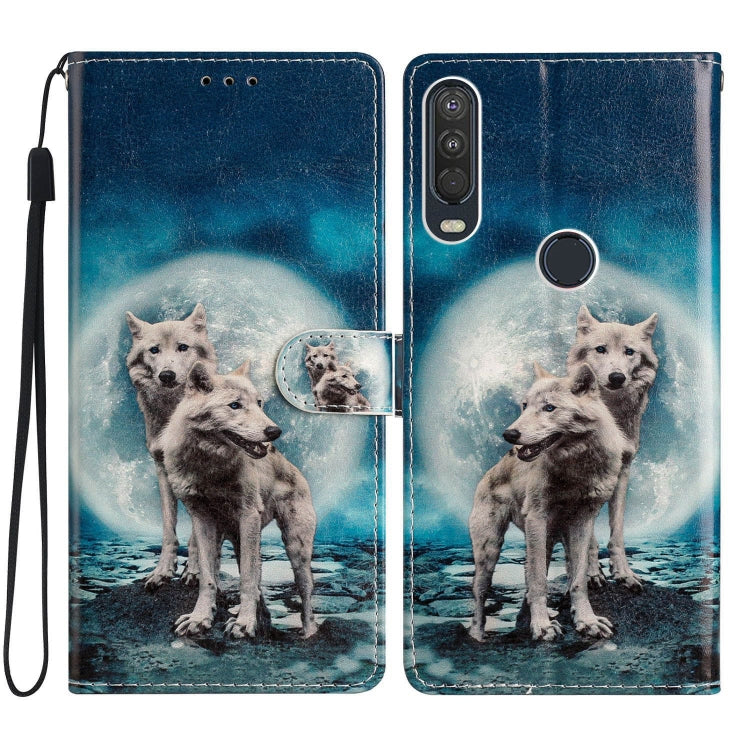 Funda de Cuero para Motorola Moto One Action con Dibujo Coloreado (Twin Wolves)