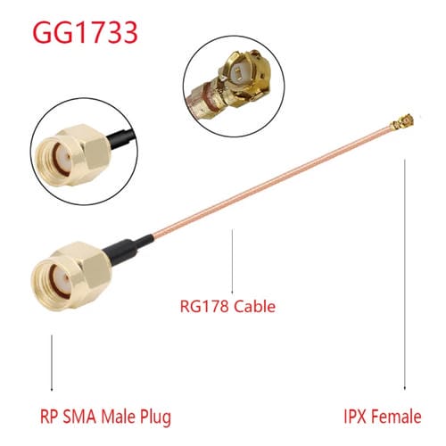 Cable Adaptador Ipx Hembra a Gg1733 Rp-Sma Macho Rg178, Longitud 15 cm