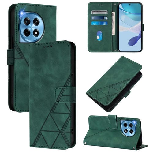 Funda de Cuero con Tapa y Relieve 3D para OnePlus 12 5G Global Crossbody (Verde)