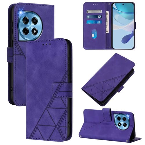 Funda de Cuero con Tapa y Relieve 3D para OnePlus 12 5G Global Crossbody (Morado)
