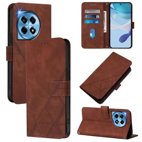 Funda de Cuero con Tapa y Relieve 3D para OnePlus 12 5G Global Crossbody (Marrón)
