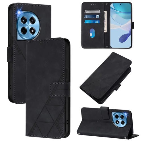 Funda de Cuero con Tapa y Relieve 3D para OnePlus 12R 5G Global Crossbody (Negra)