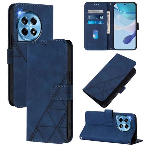 Funda de Cuero con Tapa y Relieve 3D para OnePlus 12R 5G Global Crossbody (Azul)
