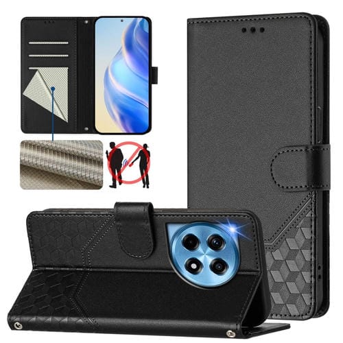 Funda de Cuero Rfid con Relieve de Panal Global para OnePlus 12 5G (Negra)
