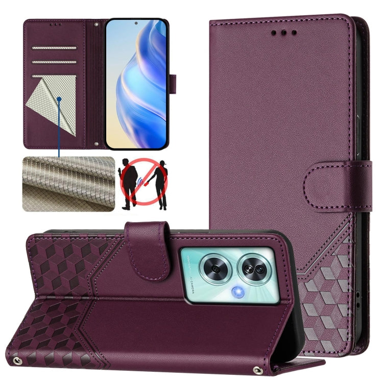 Funda de Cuero Rfid con Relieve en Panal para OnePlus Nord 3/Ace 2V (Violeta)