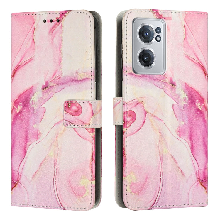 Funda de Cuero para OnePlus Nord 2T con Patrón de Mármol Pintado (Oro Rosa)