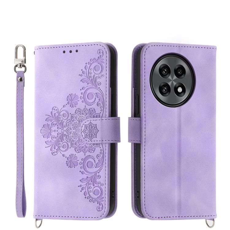 Funda de Cuero con Relieve de Flores para OnePlus 13R/Ace 5/Ace 5 Pro (Morado)