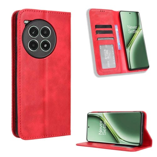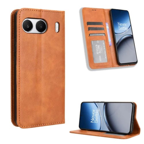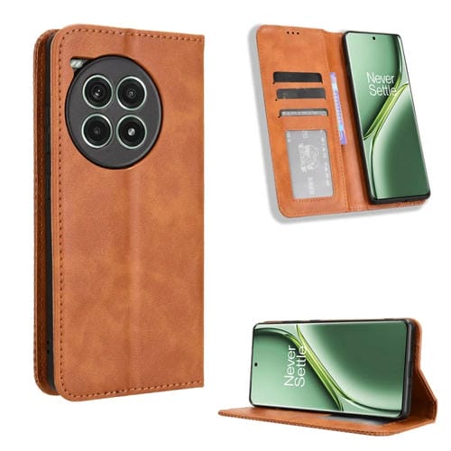 Funda de Cuero OnePlus Ace 3 Pro con Textura Retro y Hebilla Magnética (Marrón)