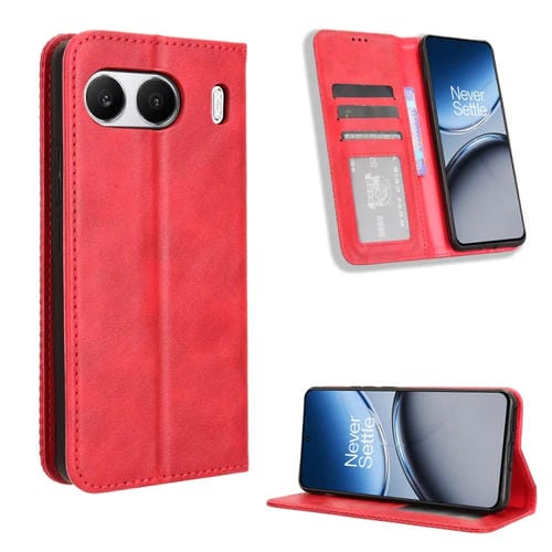 Funda de Cuero OnePlus Nord 4 5G Textura Retro Hebilla Magnética (Negro)