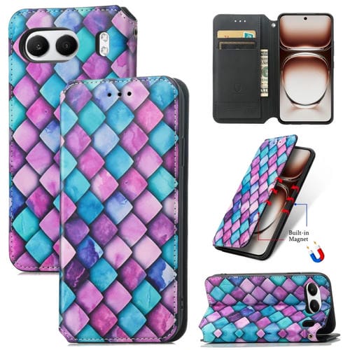 Funda de Cuero Rfid con Relieve Sonriente para OnePlus Nord Ce4 (Violeta)