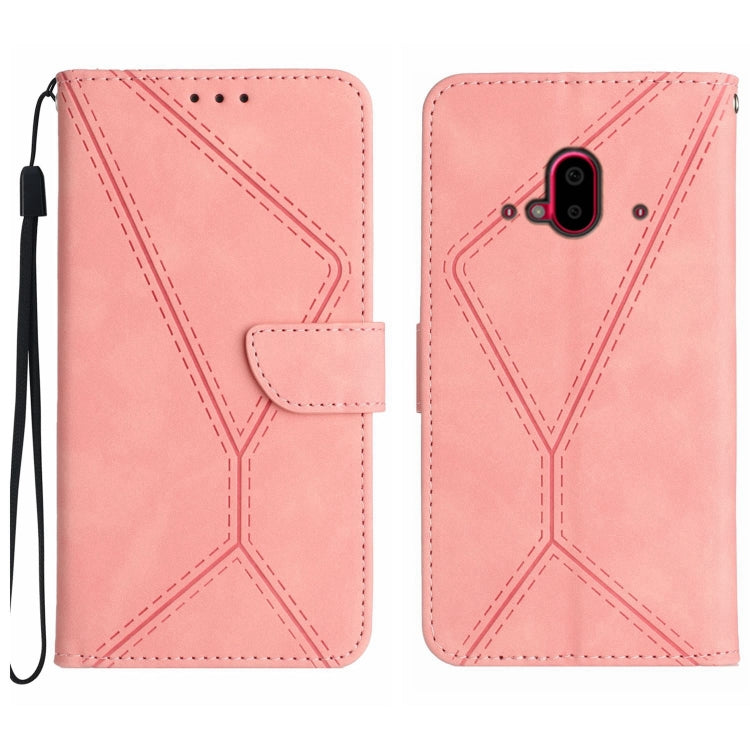 Estuche para teléfono Fujitsu Arrows N F-51C cuero con costuras en relieve (Rosa)