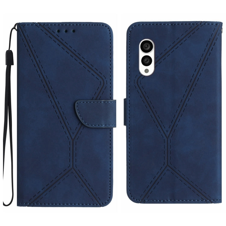 Funda de Cuero para Kyocera Android One S10 con Costuras en Relieve (Azul)